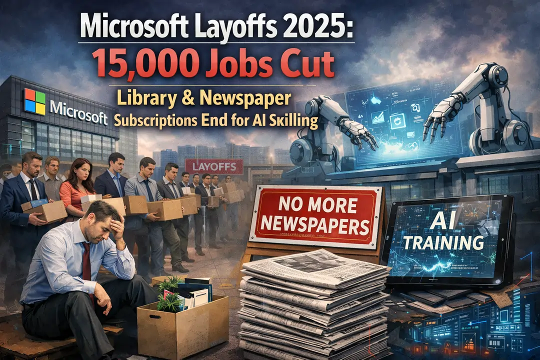 Microsoft Layoffs 2025: 15,000 Jobs Cut, Library & Newspaper Subscriptions End for AI Skilling –